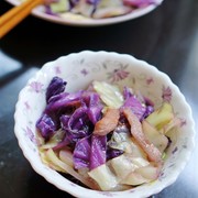紫甘蓝、包菜、蒜瓣、油、盐、鸡精。
