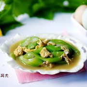 丝瓜、鸡蛋、蒜末、盐、料酒。
