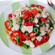 猪腰、青椒、葱、红椒、姜、蒜、油、盐、味精、料酒、淀粉、白醋、生抽、老抽。