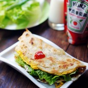 吐司片、鸡蛋、黄瓜、番茄酱。