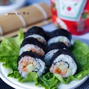熟米饭、海苔、黄瓜、火腿肠、猪肉丝、番茄酱、白醋、细砂糖、盐。