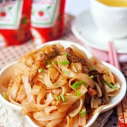 河粉、猪肉、猪肝、蒜末、油、盐、鸡精、酱油、番茄酱、醋、淀粉、料酒、葱花。