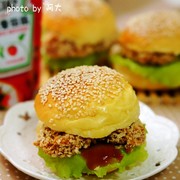 高筋面粉、低筋面粉、鸡蛋液、牛奶、细砂糖、盐、酵母、黄油、鸡胸肉、生菜、鸡蛋、盐、鸡精、黑胡椒粉、五香粉。