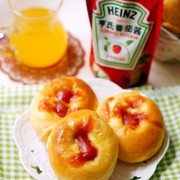 高筋面粉、低筋面粉、鸡蛋液、清水、细砂糖、盐、酵母、黄油、迷你火腿肠、沙拉酱、番茄酱。
