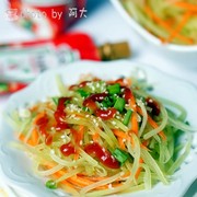 莴苣、胡萝卜、盐、醋、白芝麻、香油、生抽、番茄酱、葱花。