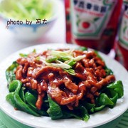 猪肉、青椒、盐、水淀粉、鸡精、酱油、番茄酱、葱花、料酒。
