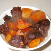 牛腩、土豆、八角、香叶、桂皮、生姜、料酒、花椒。