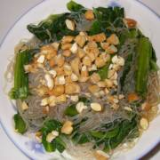 莴笋叶、粉丝、大杏仁、腰果、肉丝、豆腐丝。