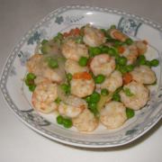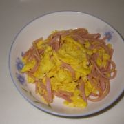 大虾、面条、青菜、葱白、鲜酱油、番茄沙司、盐、糖、料酒。