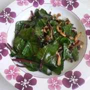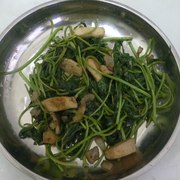 炒台湾番薯苗、鱼片、盐、蒜米。