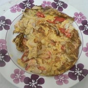 果条、鸡肉片、鲜虾、牙菜、红辣椒、鱼片、蛋、蒜米、盐、酱油、黑酱油、胡椒粉、辣椒酱。