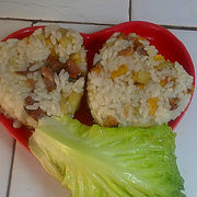 剩饭、生菜、腌肉丁、红薯、马铃薯、植物油。
