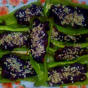 磨肉、青椒、芝麻、奥尔鸡翅料良、老抽、黑椒。