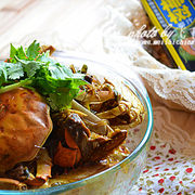 毛蟹、梭子蟹、小葱、生姜、香菜、粉丝、柠檬汁、椰汁、咖喱块、料酒、盐。
