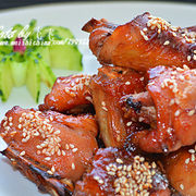 仔鸡、小葱、姜片、白芝麻、李锦记叉烧酱、蓝莓果酱、新奥尔良腌鸡料、料酒、蜂蜜。