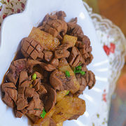 猪腰、生梨、葱姜末、料酒、生抽、老抽、糖。