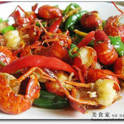 小龙虾、青椒、红椒、葱、姜、桂皮、八角、花椒、辣椒、蒜。