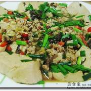 老豆腐、肉末、干菜、红椒、韭菜、蒜茸、食用油、花椒、生抽、白糖、盐。
