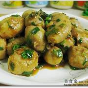 糯米饭、冬笋、香干、夹心肉、葱花、香菜。