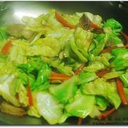 包心菜、胡萝卜、三层肉、蒜、干辣椒。