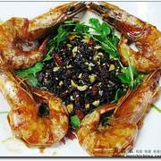 对虾、龙井茶叶、枸杞、花生米、芝麻、蒜茸、姜。