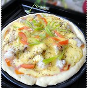 面粉、老面、橄榄油、水、盐、糖、鳕鱼肉、马苏、青椒、番茄、柠檬、鸡蛋液、白胡椒粉、番茄酱、披萨草。
