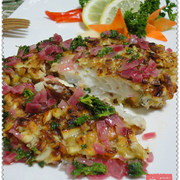 银鳕鱼、杏仁碎、柠檬、面粉、蛋液、洋葱、法香、黄油、精盐、料酒、白胡椒粉、白葡萄酒。