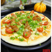 面粉、老面、橄榄油、水、盐、糖、牛肉、马苏、青椒、番茄酱、小番茄、鸡蛋液。