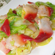 北极贝、包菜、精盐、鸡精、红油、香油。