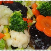 西兰花、菜花、胡萝卜、玉米粒、黑木耳、葱花、椰汁、精盐、鸡精。
