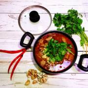小辣椒、黄瓜、姜、芹菜、香菜、蒜苗、金针菇、大葱、牛肉、白菜、莴笋、红辣椒、蒜瓣、料酒、胡椒粉、花椒粉、食用油、淀粉、豆瓣酱、酱油。