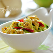 新鲜鸡胸肉、黄瓜、胡萝卜、姜、蒜、花椒、辣椒、盐、凉拌酱油、香醋、白糖、鸡精、香油。
