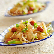 熟牛筋、绿豆芽、芦笋、姜、葱、花生米、芝麻、盐、香醋、生抽、花椒粉、辣椒粉、鸡精。
