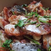 三文鱼头、老姜、大蒜、大葱、香菜、蚝油、海鲜酱、栗粉、色拉油、料酒。