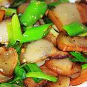 猪腿肉、青椒、蒜苗、老姜、色拉油、老卤水、鸡精、盐。