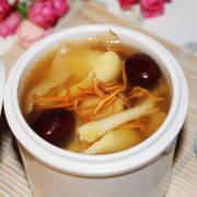 花胶、瘦肉、虫草花、沙参、玉竹、红枣、姜片、盐、料酒。
