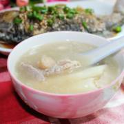 鲫鱼、铁棍山药、瘦肉、干贝、玉竹、红枣、姜片、油、盐。