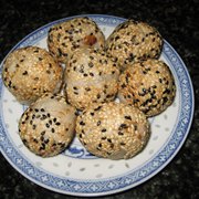 糯米面、红豆沙馅、熟咸鸭蛋黄、生白芝麻、生黑芝麻。