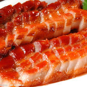 猪肉、大蒜、生抽、李锦记叉烧酱、料酒、蜂蜜、红酒。