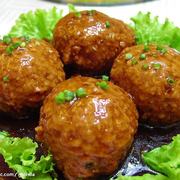 猪肉、荸荠或藕、鸡蛋、生菜叶、姜、葱白、生抽、老抽、料酒、糖、干淀粉、白胡椒粉、盐、清水。