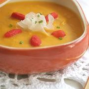 南瓜、糯米粉、枸杞、熟白银耳、水、蜂蜜、牛奶。