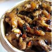 凤爪、豆豉原粒、蒜茸、葱、红椒、姜片、八角、盐(调料)、胡椒粉(调料)、糖(调料)、蚝油(调料)、老抽(调料)、生粉(调料)、纯香麻油(调料)、料酒(调料)。
