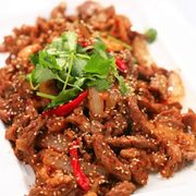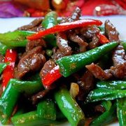 牛里脊肉、杭椒、红尖椒、蒜、小苏打、油。