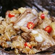 肋排、糯米、香菇、干荷叶、葱丝、姜丝、老抽、生抽、盐、花椒粉、八角、桂皮、油。