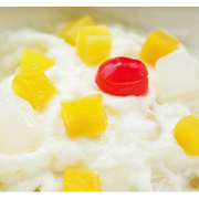 鲜牛奶、鸡蛋清、花生油、水淀粉、水果粒、盐。