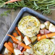 卷心菜、胡萝卜、红皮土豆、橄榄油、无盐黄油、芥末、蒜末、韭菜、莳萝籽、盐、黑胡椒。