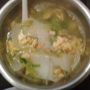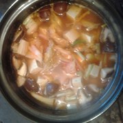 韩式辣白菜、土豆、黄瓜、豆芽、香菇、豆腐、洋葱、番茄、青辣椒、红辣椒、葱、姜、大豆酱、盐。
