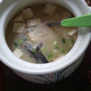 豆腐、鱼头、料酒、酱油、葱、姜、盐。