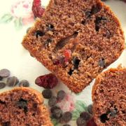 高筋面粉、杏仁粉、可可粉、糖粉、泡打粉、小苏打、全蛋、无盐黄油、牛奶、盐、蔓越莓干、红酒、烘焙用巧克力豆。