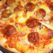 面粉、干酵母、温水约、玉米油、三蔬丁、洋葱、无筋豆、马苏里拉芝士、玉米油、盐、白砂糖、自制番茄酱。